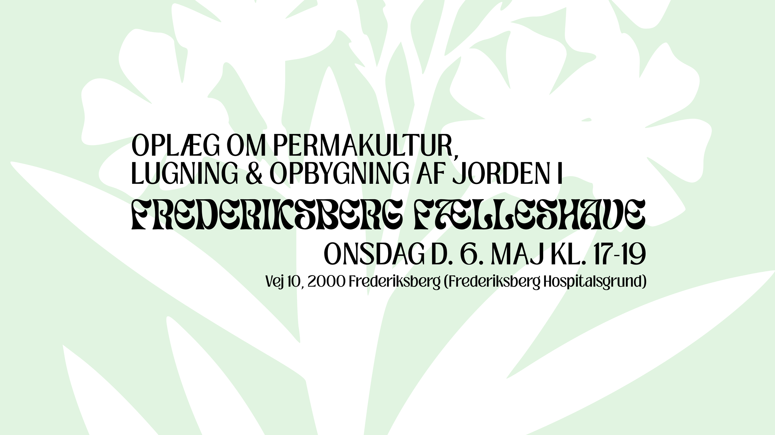 PermaGartneren Charlotte Gross kommer og fortæller os om permakultur, lugning og opbygning af jorden. Og så går vi sammen i haven. Det er gratis at deltage. Efter oplægget laver vi mad over bål for dem der har lyst til at blive og spise sammen 🍀 Hvis du ikke er medlem af Frederiksberg Fælleshave og du gerne vil spise med efter oplægget må du gerne sende 35kr. til MobilePay Boks 9062BB inden d. 3. maj, så køber vi ind til dig!